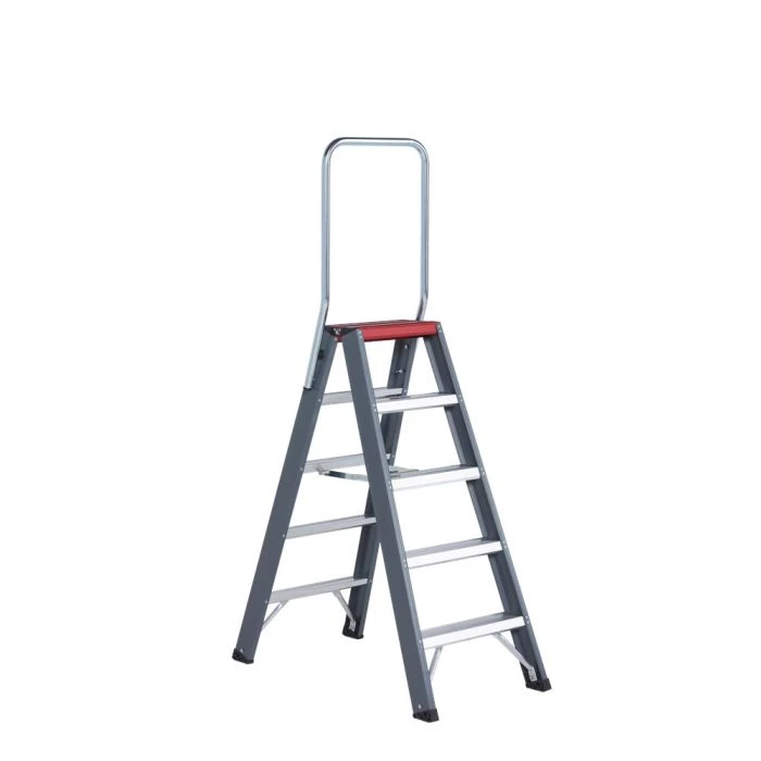 De Falco is gemaakt voor intensief gebruik. Dubbel oploopbaar dus aan beide zijden te gebruiken. De robuust vormgegeven trap is ideaal voor elke professionele klus. Het unieke scharniersysteem van het bordes maakt de trap opvallend veilig in gebruik.