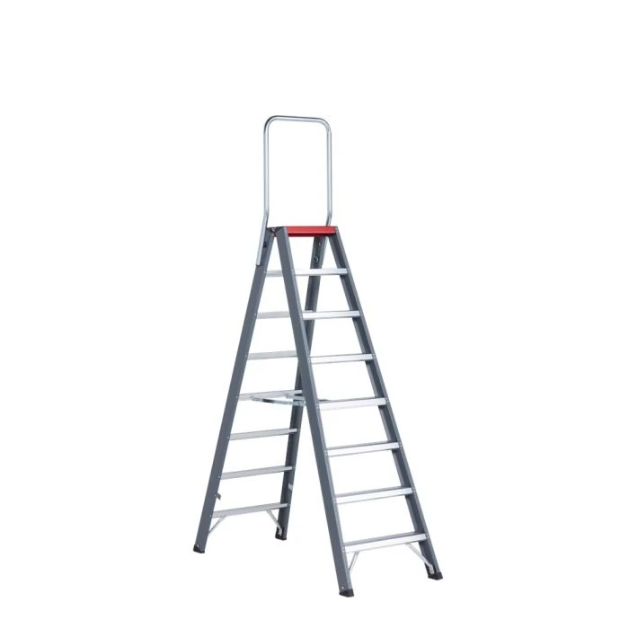 De Falco is gemaakt voor intensief gebruik. Dubbel oploopbaar dus aan beide zijden te gebruiken. De robuust vormgegeven trap is ideaal voor elke professionele klus. Het unieke scharniersysteem van het bordes maakt de trap opvallend veilig in gebruik.