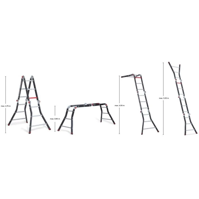 De Varitrex Prof zet je eenvoudig in een andere stand: A-stand, ladderstand, platformstand én muurafhoudstand.