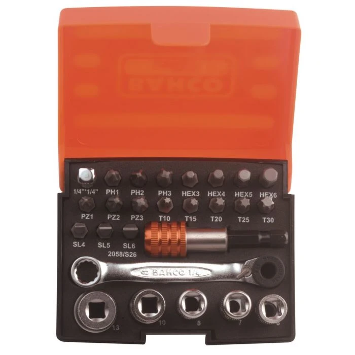 BAHCO BIT-/DOPSLEUTELSET MET RATEL 1/4″ BITS ZINKFOSFAAT