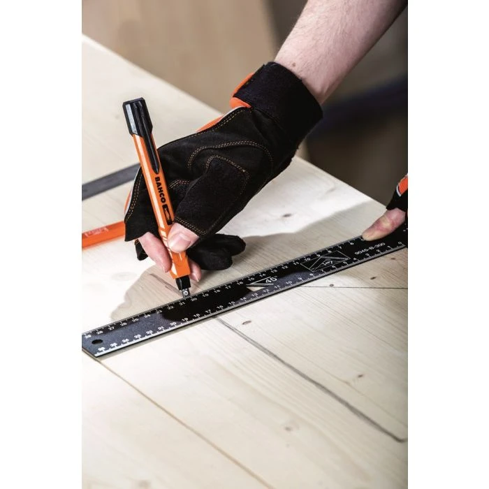 - Uit één stuk gestanste schrijfhaken van Zweeds kwaliteitsstaal. Voor een nauwkeurige 90° hoek waarbij gemakkelijk 45° en 90° hoeken kunnen worden afgetekend