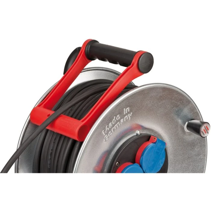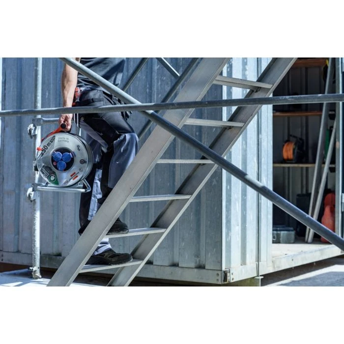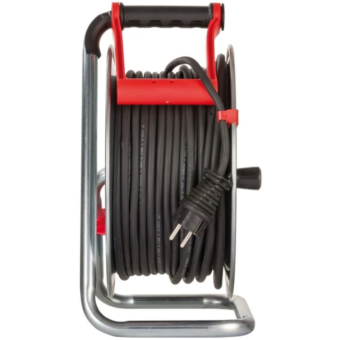 De Garant S IP44 kabelhaspel met een kabellengte van 50 m in de kleur zilver van Brennenstuhl overtuigt door zijn kwaliteit en veiligheid op alle vlakken. De kabelhaspel is bij uitstek geschikt voor kortstondig buitengebruik en overtuigt bovendien met de volgende eigenschappen: Innovatieve draaggreep “kabelpiloot” voor perfect kabelmanagement. Schommelt aan beide zijden en maakt het mogelijk om comfortabel te dragen en op te hangen Met draaigreep voor comfortabel oprollen Beschermingsklasse IP44 Kabellengte 50m Kabelaanduiding H05RR-F 3G1.5 Kabelkwaliteit rubber Kabel kleur zwart Drumdiameter 290 mm