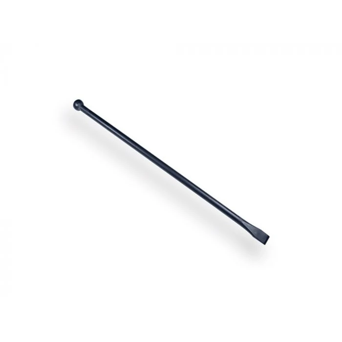 Gesmede stootijzer rond model. Lengte 100cm. Diameter 2,8cm. Met knop en gesmede platte bek.