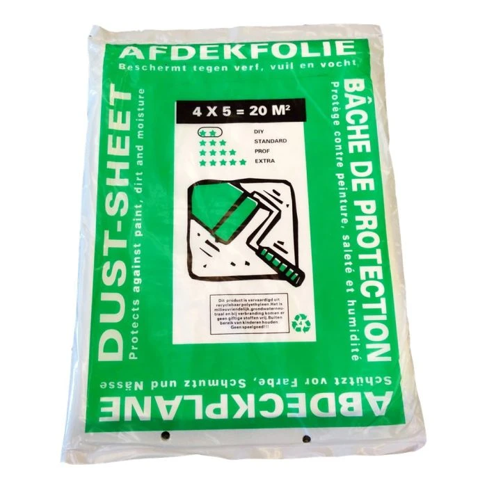 - Gevouwen folievel voor het afdekken van bijvoorbeeld banken, stoelen, kasten en apparatuur bij schilder- en schuurwerkzaamheden