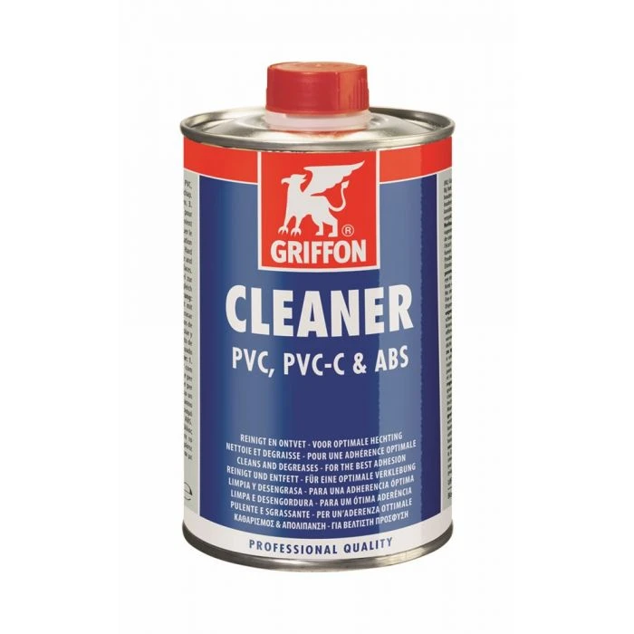 Reinigingsmiddel voor het reinigen en ontvetten van te verlijmen buizen, moffen en fittingen van (hard) PVC, PVC-C en ABS. Tevens geschikt voor het verwijderen van niet uitgeharde lijmresten en het reinigen van kwasten en gereedschap. Gebruiken in combinatie met Griffon Cleaner Cloth.