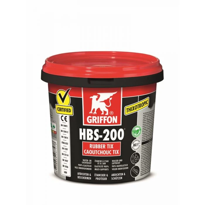 Universele, tixotrope, duurzame, waterdichte, luchtdichte en beschermende coating. HBS-200® Rubber Tix heeft een hoge viscositeit waardoor het ideaal is voor verticale toepassingen en een snelle opbouw van lagen.