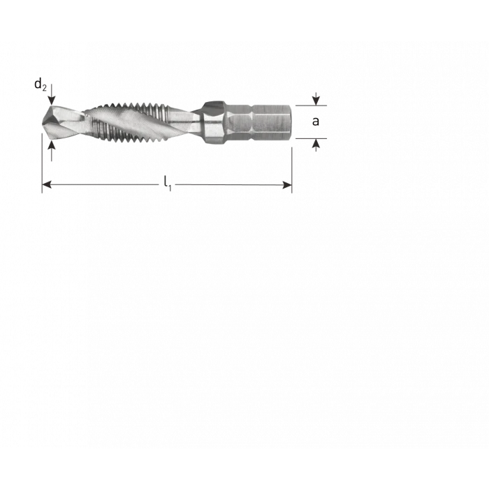 HSS-G Combi-boortap, met 1/4″-bitaansluiting. Snel wisselen van gereedschap mogelijk in combinatie met 1/4″ bithouder. Ook direct te gebruiken in een boorkop.
