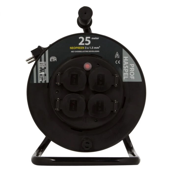 EMT Kabelhaspel 25mtr. prof, randaarde, s.w.d. (IP44) 3 x 1.5 mm².