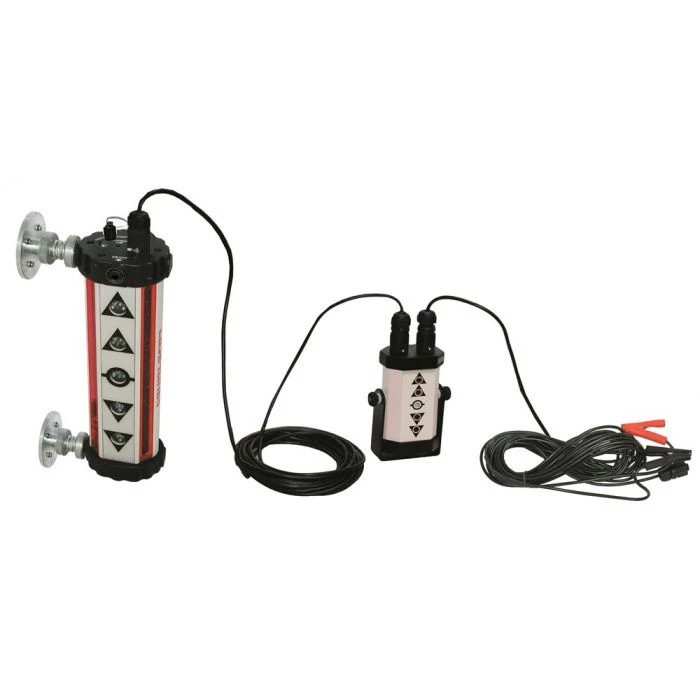 - m.b.v. vier 25 cm lange laser-ontvangsteenheden kan de laser binnen een radius van 360° worden ontvangen