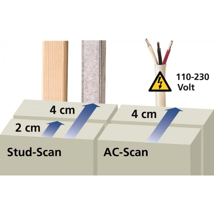 Elektronisch herkennen van spanningvoerende leidingen evenals wand- en dwarsbalken in de droogbouw.