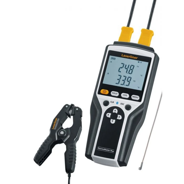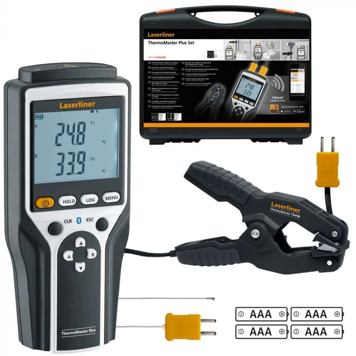 inclusief: ThermoMaster Plus, 1x K-tupe temperatuursensor, ThermoSensor Clamp, batterijen, draagkoffer