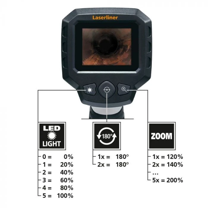 - Probleemlokalisatie: camera geeft weer wat zich achter of in voorwerpen, wanden, leidingen, kabels enz. bevindt_dankzij LED-verlichting ook onder slechte lichtvoorwaarden
