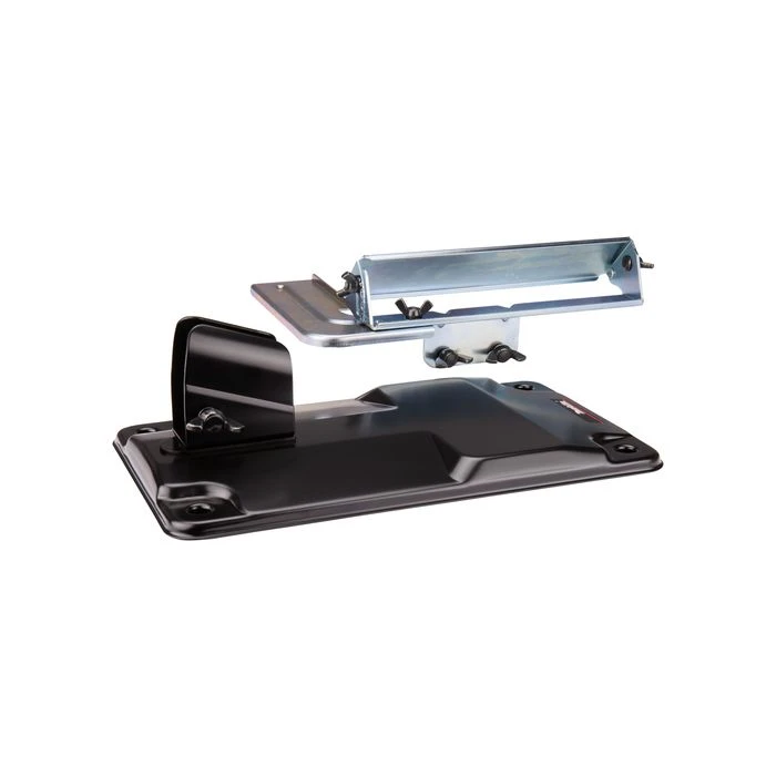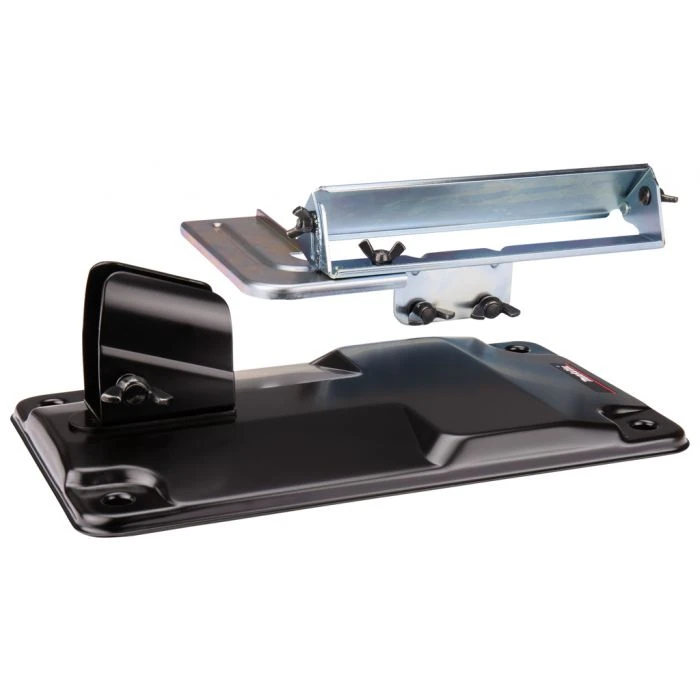 Standaard waar bandschuurmachine in geplaatst kan worden zodat beide handen vrij zijn om materialen te bewerken.