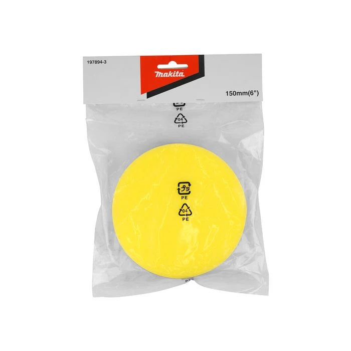 Gele spons 150mm voor gebruik icm poetsmachine of excenter polijstmachine, bevestiging dmv klittenband.