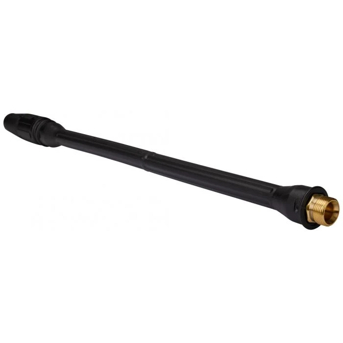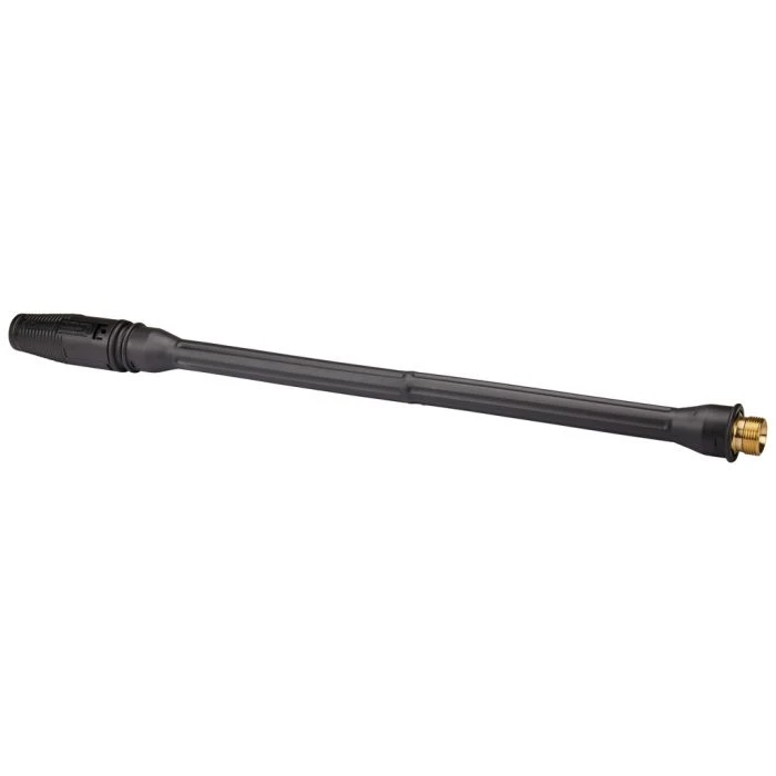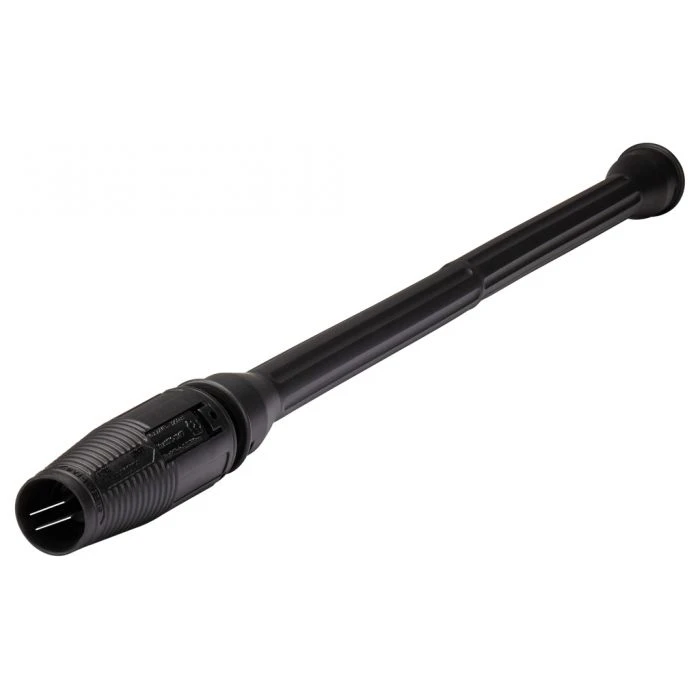 De spuitlans is doormiddel van de instelbare sproeimond in te stellen van een puntstraal naar een brede waaier.