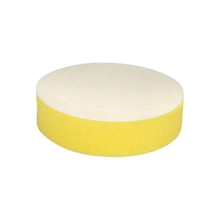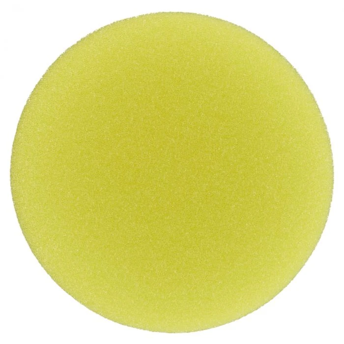 Gele spons 125mm voor gebruik icm poetsmachine of excenter polijst-/schuurmachine, bevestiging dmv klittenband.