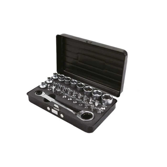 Bit en dopsleutelset 31 delig met 72 tands ratel 1/4inchaansluiting.