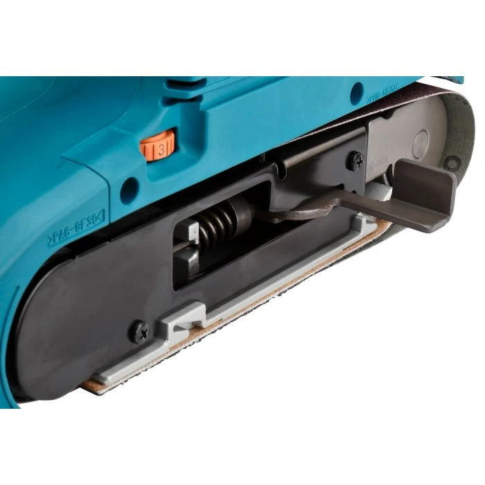 Als een schuurband niet volledig recht is en afloopt, kun je deze corrigeren middels de bandloopcorrectie.