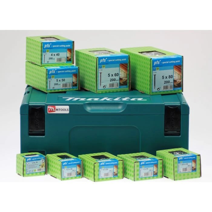 Dit actiepakket bevat van alle onderstaande maten verzinkte PFS Torx schroeven 1 doos. In totaal dus 9 dozen schroeven in 200 stuks verpakking