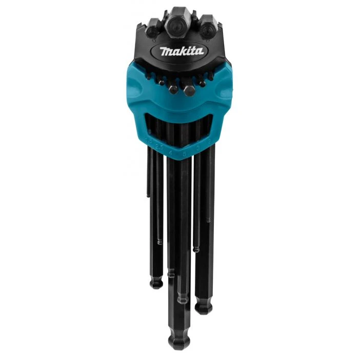 De sleutels hebben een kogelkop aan de onderzijde voor het indraaien van inbusbouten onder een hoek en zitten in een handige houder met clip.