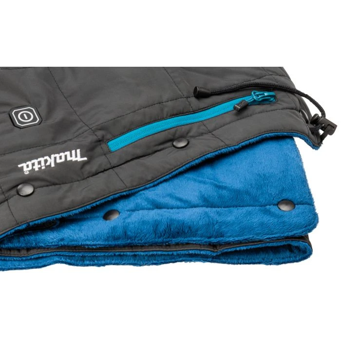 Voorzien van drukknopen en aantrekkoord, deken kan ook om middel of schouders gedragen worden.