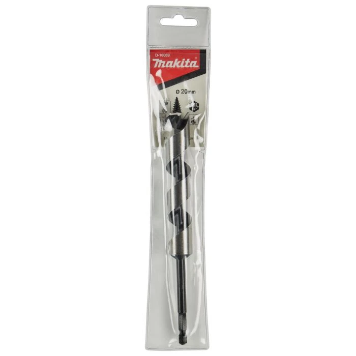 Makita slangenboor 20x200mm 1/4″ zeskant vorm E aansluiting, met zelfaantrekkende schroefdraadpunt en voorsnijder.