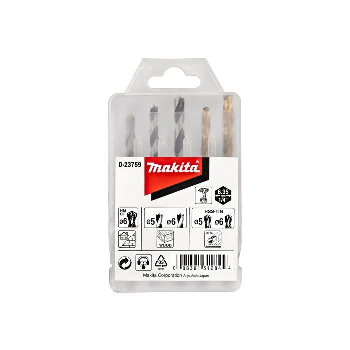 Makita 5-delige hout- steen- en metaalborenset met 1/4″ Vorm E aansluiting.