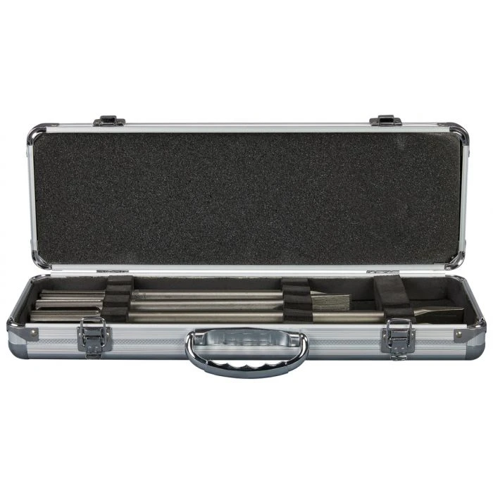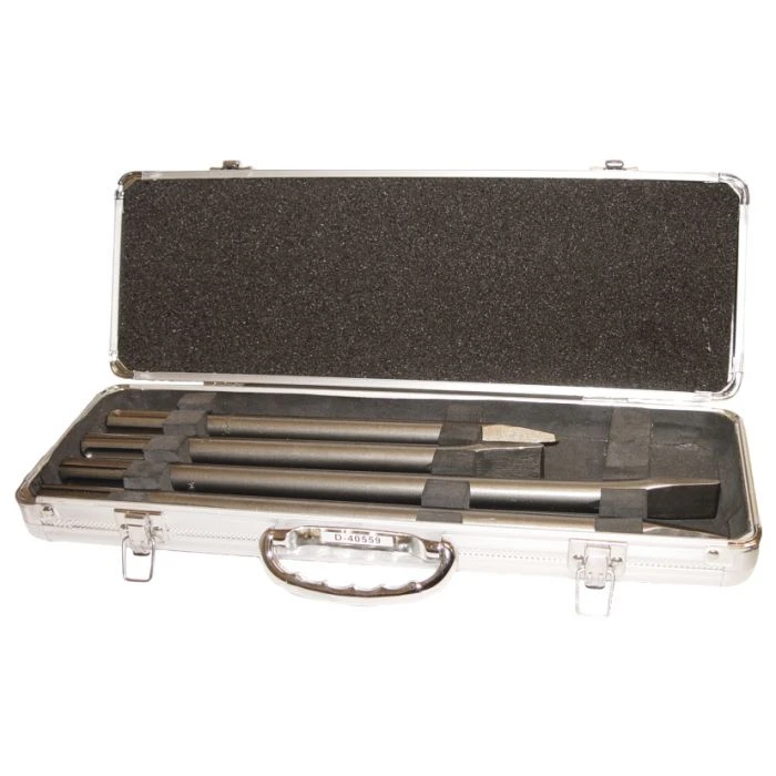 Deze 4-delige beitelset met SDS-MAX aansluiting bestaat uit: 2x puntbeitel (1x300mm en 1x 400mm) 2x koudbeitel (1x 25x300mm en 1x 25x400mm) In aluminium koffer.