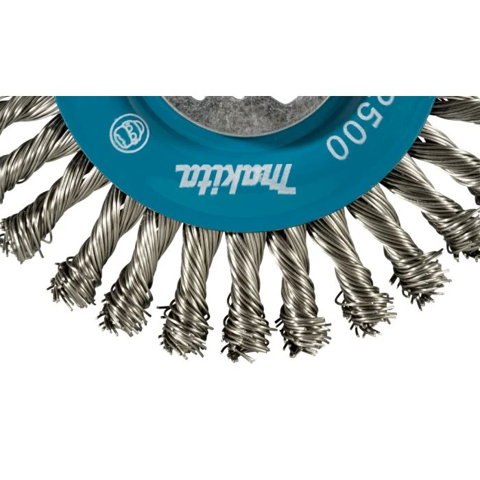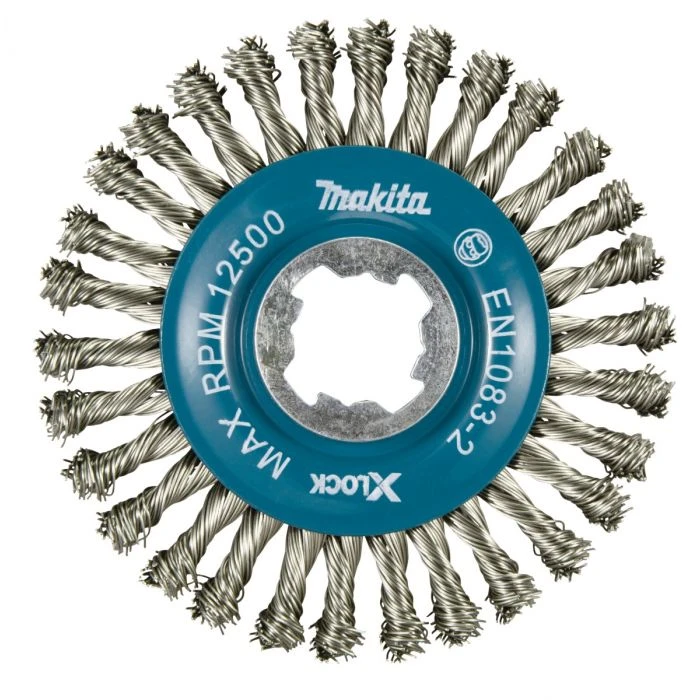 Makita rondborstel 115mm met getordeerde, fijn geknoopte draad in diameter 0.5mm met X-LOCK aansluiting.