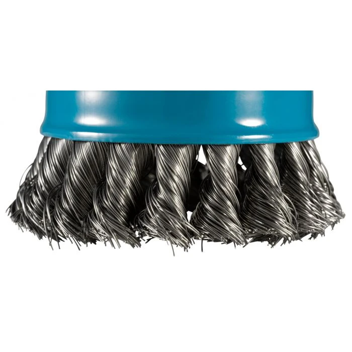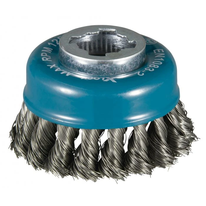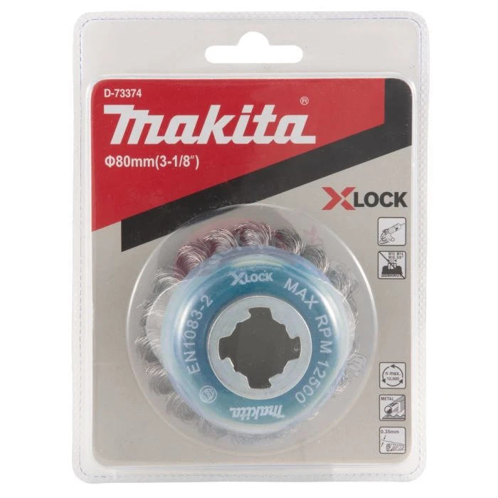 Makita komborstel 80mm met getordeerde, geknoopte, staaldraad in diameter 0.35mm met X-LOCK aansluiting.
