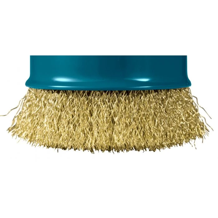 Makita komborstel 75mm met geplooide, vermessingde staaldraad in diameter 0.3mm, met X-LOCK aansluiting.