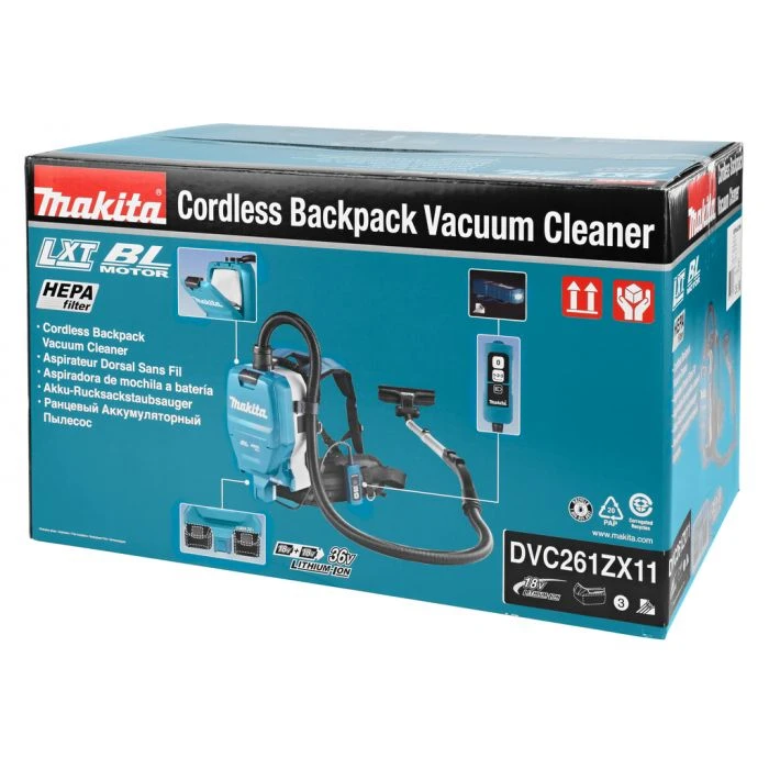 Compact en lichte (4,5 kg inclusief accu’s) rugstofzuiger.