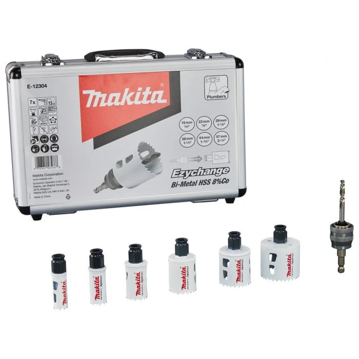 7-delige gatzaagset BiM bestaande uit gatzagen in diameters 19, 22, 29, 38, 44, 57 en een diepte van 44mm.