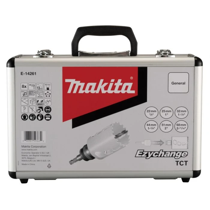 Makita TCT gatzaagset met Ezychange snelwisselsysteem; dit systeem maakt het mogelijk snel en eenvoudig te wisselen tussen gatzagen met verschillende diameters.
