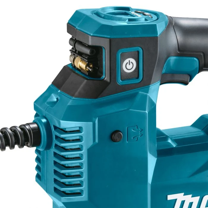 Machine kan 10 minuten continu gebruikt worden, beveiligd tegen oververhitting. – Adapter voor Frans (Presta) ventiel.