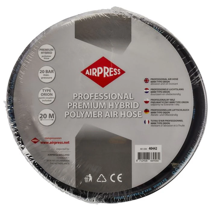 Luchtslang lengte 20 meter en diameter van 8 mm.