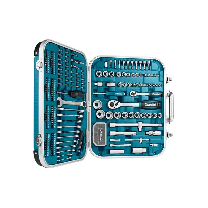 Bestaande uit: 139 bits in diverse maten, 2 schroevendraaiers, 3 bitadapters, 12 ring-/steeksleutels, 1 inbusset, 2 ratels (1/4″ en 1/2″), 48 doppen in diverse maten, 2 verlengstukken, 2 bougiessleutels, 3 dopadapters, 2 cardankoppelingen en een aantal diversen.