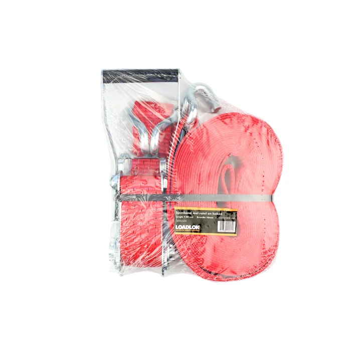Deze tweedelige spanband / sjorband is gemaakt van hoogwaardig geweven polyester (PES) en de lengte van de spanband is 9 meter. De breeksterkte van de totale spanband betreft 5000Kg. De labels worden standaard ingenaaid in de band zodat u zeker bent van de kwaliteit van de band. Deze banden zijn voorzien van een zware kwaliteit gegalvaniseerd kriksysteem.