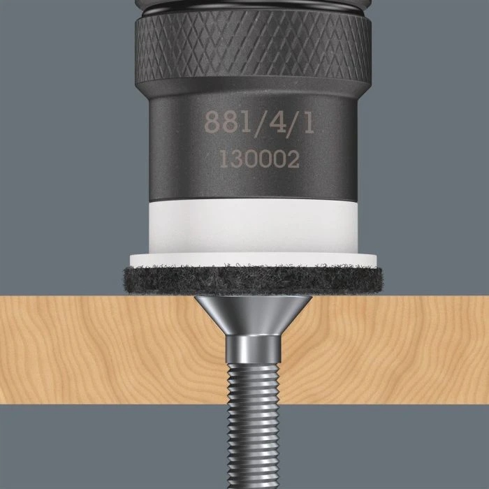Bithouder met variabel instelbare inschroefdieptebegrenzing en beschermende viltring voor bescherming van de oppervlakken.
